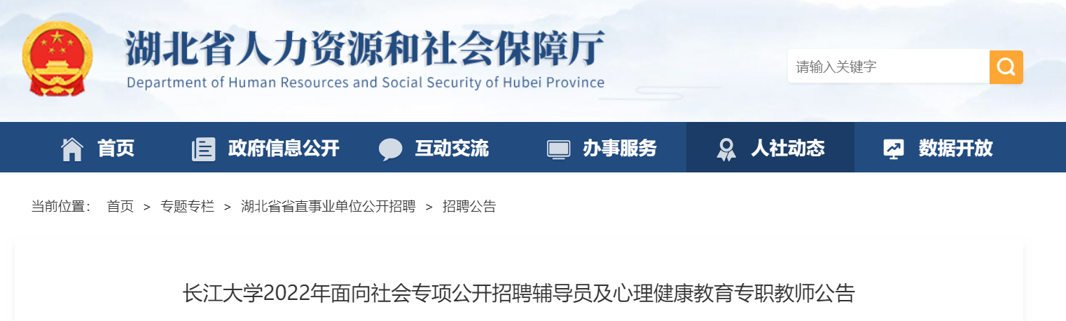 湖北長江大學(xué)2022年面向社會專項(xiàng)公開招聘輔導(dǎo)員及心理健康教育專職教師公告已發(fā)布,報名時間:自公告發(fā)布之日起至2022年2月25日,現(xiàn)將招聘公告原文發(fā)布如下:
