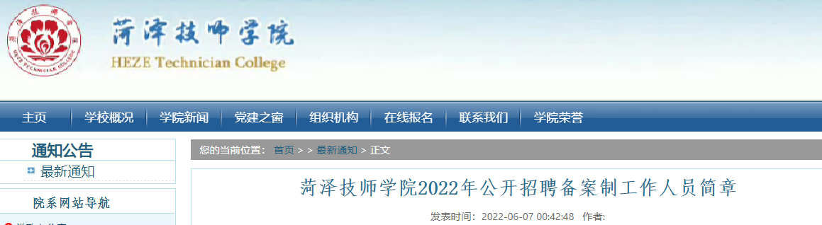2022山東菏澤技師學(xué)院招聘備案制工作人員報(bào)名入口