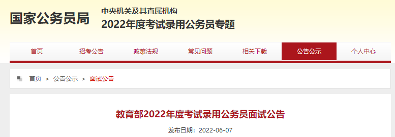 2022年國(guó)家公務(wù)員考試已進(jìn)入面試階段,為了讓考生及時(shí)獲悉相關(guān)面試事宜,今天為您精心整理了2022年教育部考試錄用國(guó)家公務(wù)員面試公告,供各位考生的查閱,更多國(guó)家公務(wù)員考試方面的資訊,請(qǐng)關(guān)注的更新。
