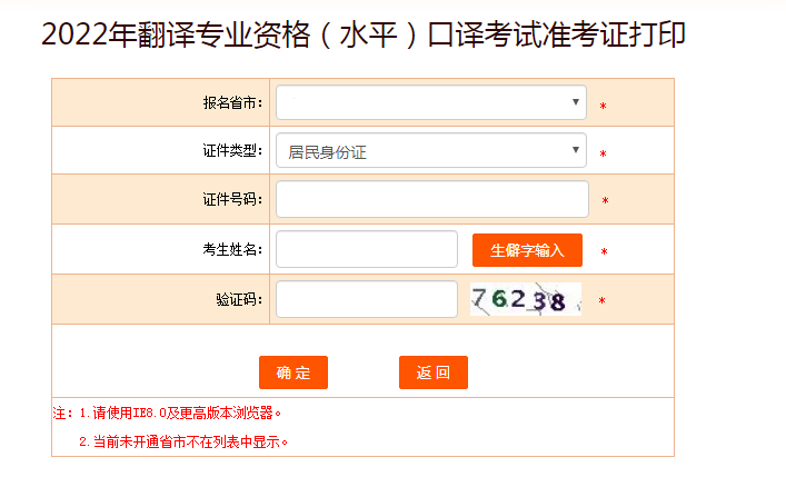 3、部分省市的翻譯資格準考證打印信息填寫時,需要注意證件號的輸入方式,有的會要求證件號不要輸入全角字符;