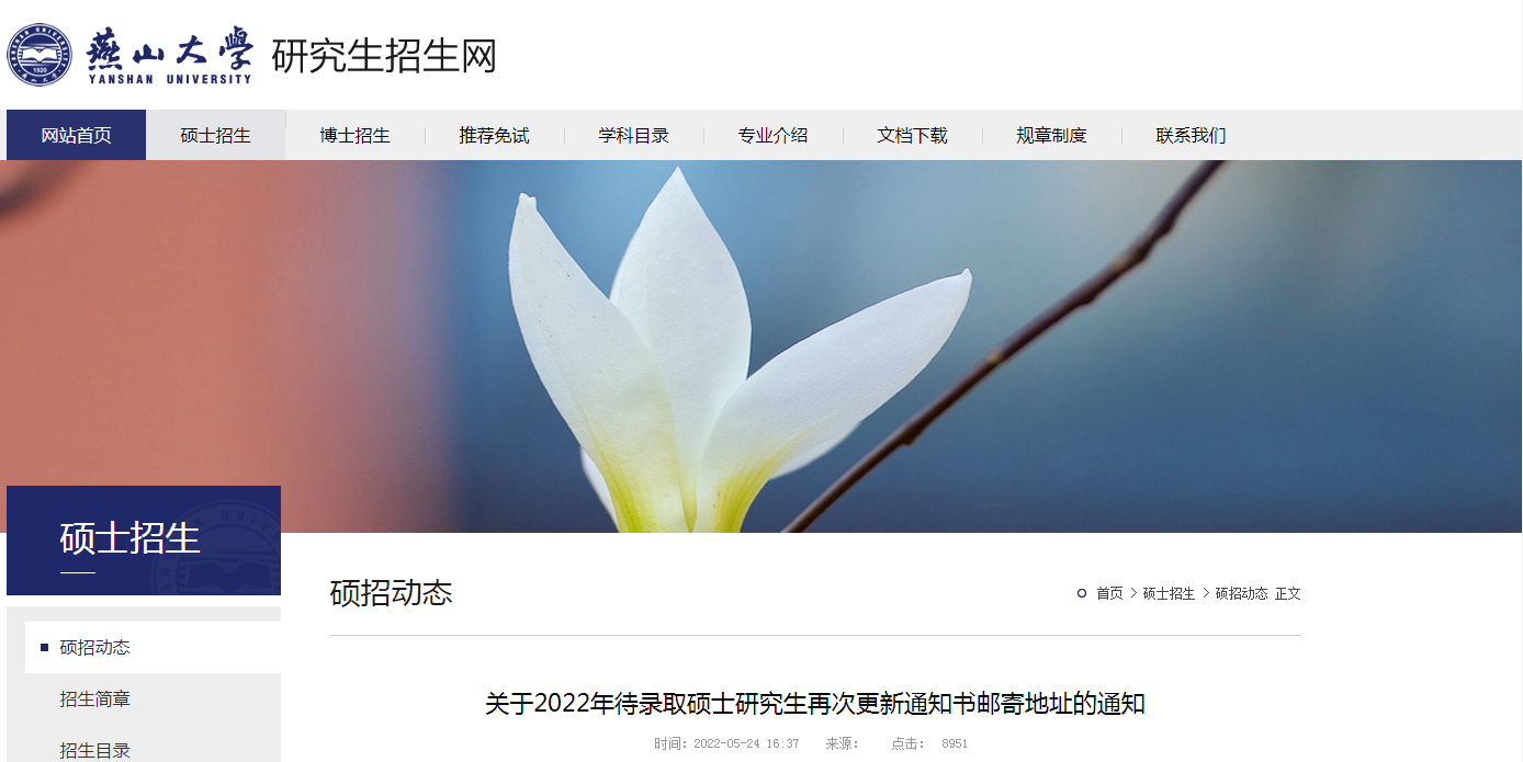 燕山大學(xué)2022年碩士研究生錄取信息查詢(通知書地址修改)