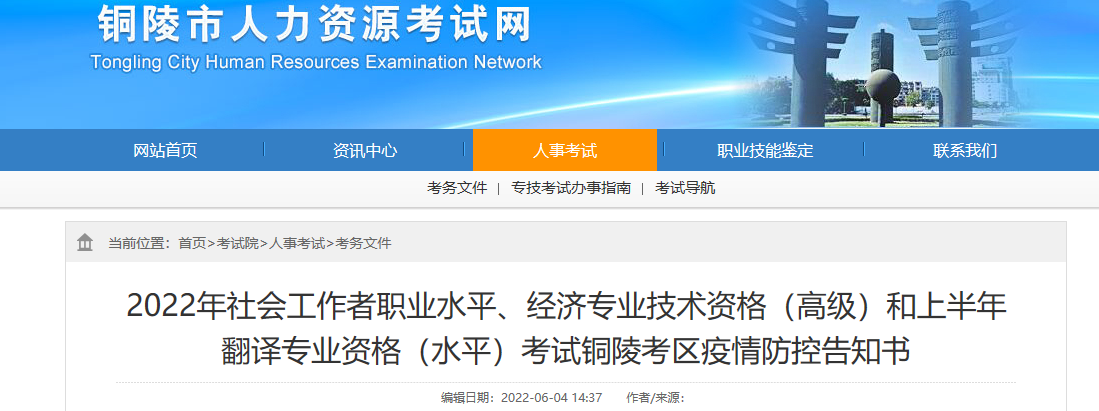 2022年社會工作者職業(yè)水平、經(jīng)濟專業(yè)技術(shù)資格(高級)和上半年翻譯專業(yè)資格(水平)考試(銅陵考區(qū))將于6月18日、19日正常進行。為切實保障廣大應(yīng)試人員的生命安全和身體健康,確保本次考試安全有序進行,現(xiàn)就有關(guān)事項告知如下: