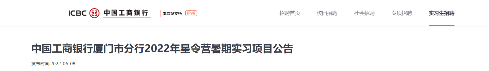 2022年工商銀行福建廈門分行星令營暑期實習(xí)項目公告已發(fā)布,報名時間:2022年6月8日-6月22日,現(xiàn)將招聘公告發(fā)布如下:
