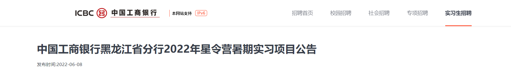 2022年工商銀行黑龍江省分行星令營(yíng)暑期實(shí)習(xí)項(xiàng)目公告已發(fā)布,報(bào)名時(shí)間:2022年6月8日-6月22日,現(xiàn)將招聘公告發(fā)布如下: