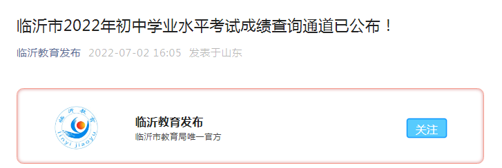 臨沂市教育局中考查分:2022年山東臨沂中考成績查詢?nèi)肟谝验_通【一】