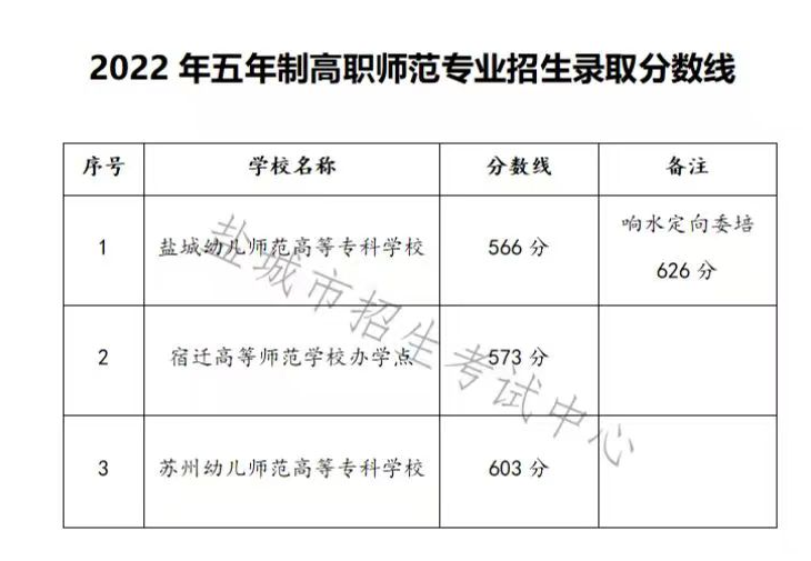 從鹽城教育局獲悉,2022年江蘇鹽城市中考五年制高職師范專(zhuān)業(yè)招生錄取分?jǐn)?shù)線(xiàn)已公布,具體詳情如下: