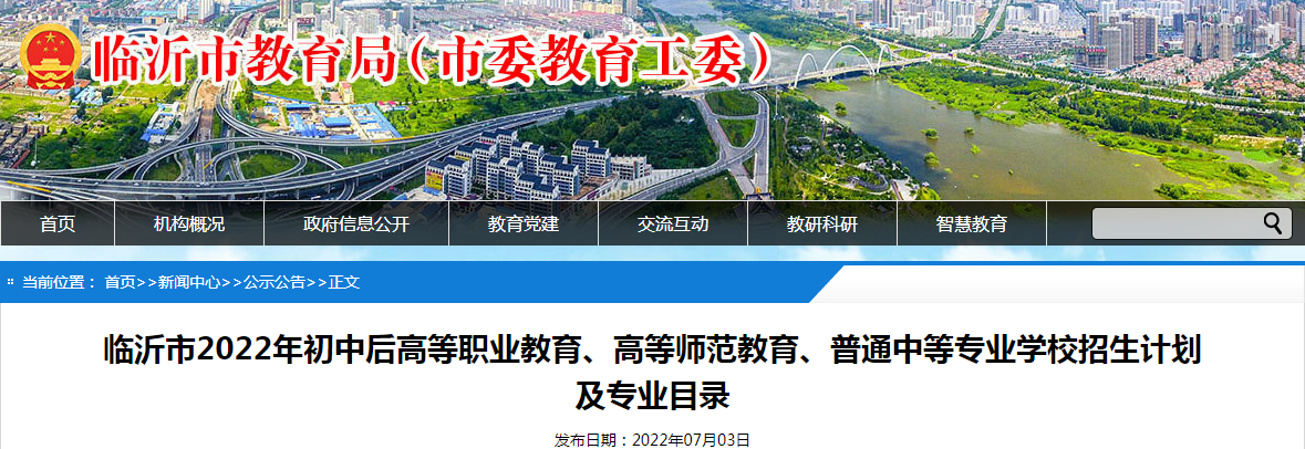 中考頻道從臨沂市教育局了解到,山東臨沂2022年初中后高等職業(yè)教育、高等師范教育、普通中等專業(yè)學校招生計劃及專業(yè)目錄已公布,請相關考生登錄臨沂市教育局(http://jyj.linyi.gov.cn/sy.htm)“公告公示”欄目,或者直接點擊下方鏈接進行查看。