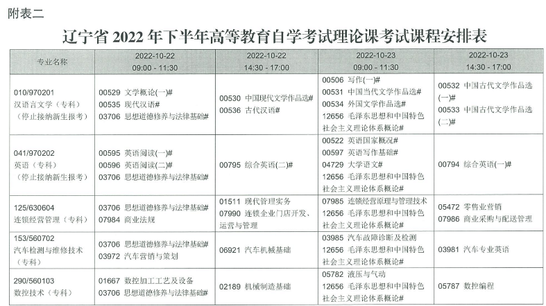 點擊查看>>遼寧省2022年高等教育自學(xué)考試各專業(yè)考試課程和時間安排