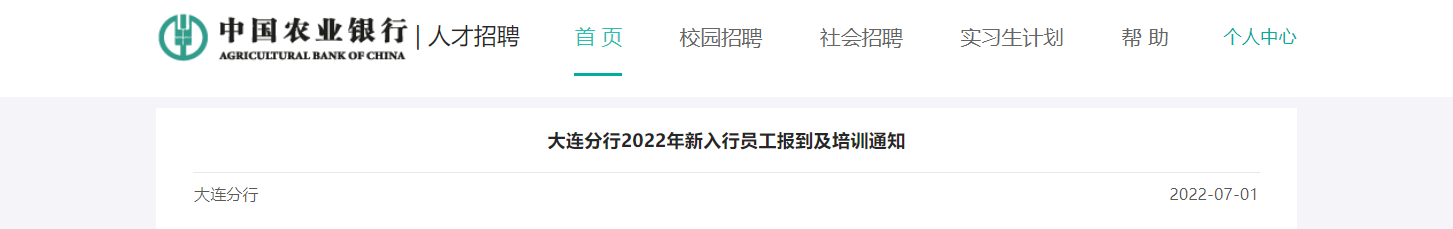 2022年農(nóng)業(yè)銀行遼寧大連分行新入行員工報到及培訓(xùn)通知已發(fā)布,報到時間:2022年7月10日(周日)14點,現(xiàn)將公告發(fā)布如下: