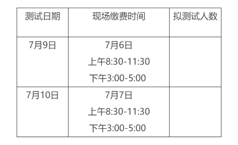 1.考生按時(shí)參加現(xiàn)場繳費(fèi)和測試。具體測試時(shí)間見準(zhǔn)考證。