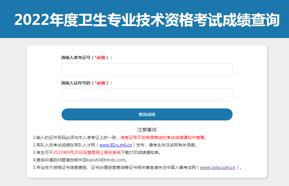 從中國衛(wèi)生人才網(wǎng)發(fā)布的《2022年衛(wèi)生專業(yè)技術(shù)資格考試成績查詢說明》得知,2022年河北內(nèi)科主治醫(yī)師成績查詢、成績單打印時間及入口已公布,即日起查分, 9月20日起打印成績單,具體詳情如下: