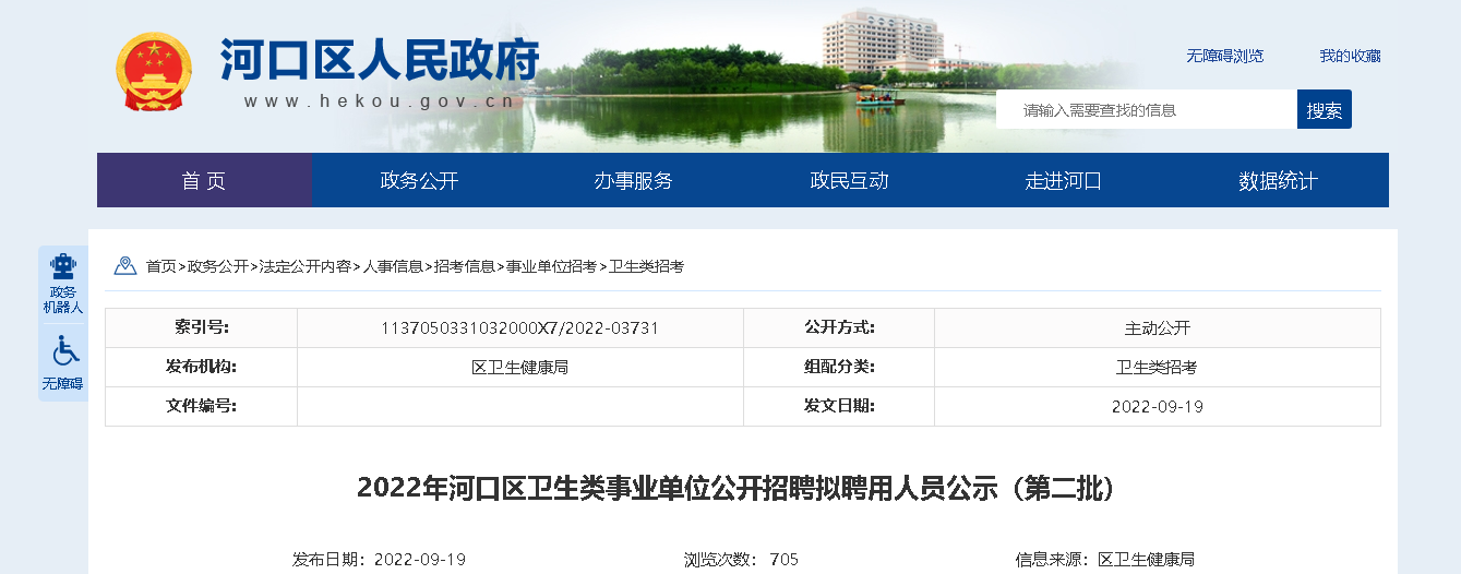 2022山東東營河口區(qū)衛(wèi)生類事業(yè)單位招聘擬聘用人員公示(第二批)已出,公示時間:2022年9月19日至2022年9月27日,現(xiàn)將招聘公示原文發(fā)布如下:
