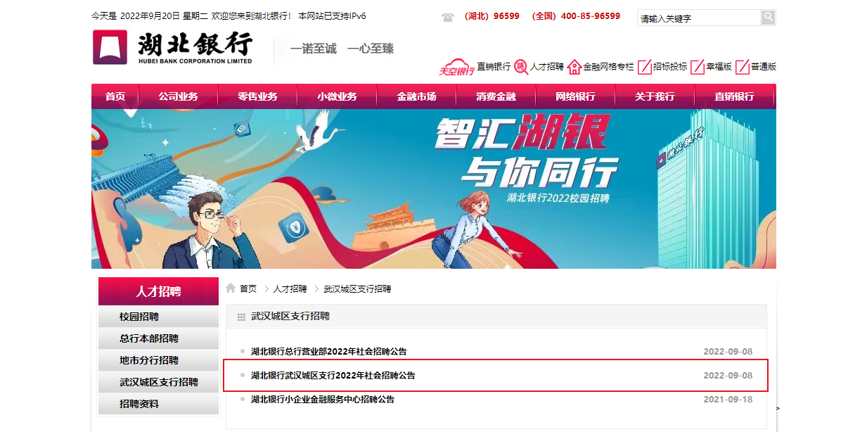 原文標(biāo)題: 湖北銀行武漢城區(qū)支行2022年社會(huì)招聘公告