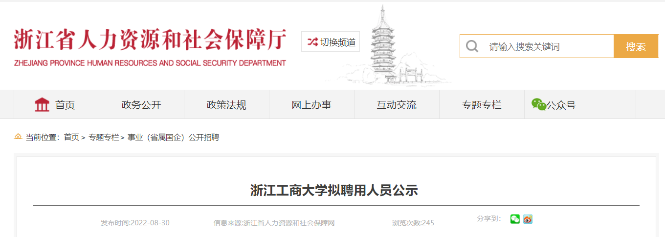 2022浙江工商大學(xué)擬聘用人員公示已發(fā)布,公示時(shí)間:從2022年8月30日至2022年9月7日,現(xiàn)將原文發(fā)布如下: