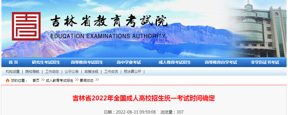 原文標題:吉林省2022年全國成人高校招生統(tǒng)一考試時間確定