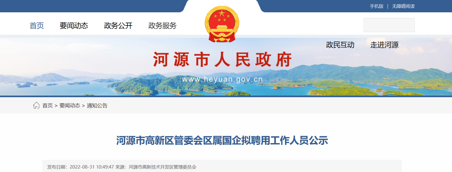 2022廣東省河源市高新區(qū)管委會(huì)區(qū)屬國企擬聘用工作人員公示已發(fā)布。公示時(shí)間:2022年8月31日至9月6日(5個(gè)工作日)。為您整理了以下內(nèi)容,供您參考。