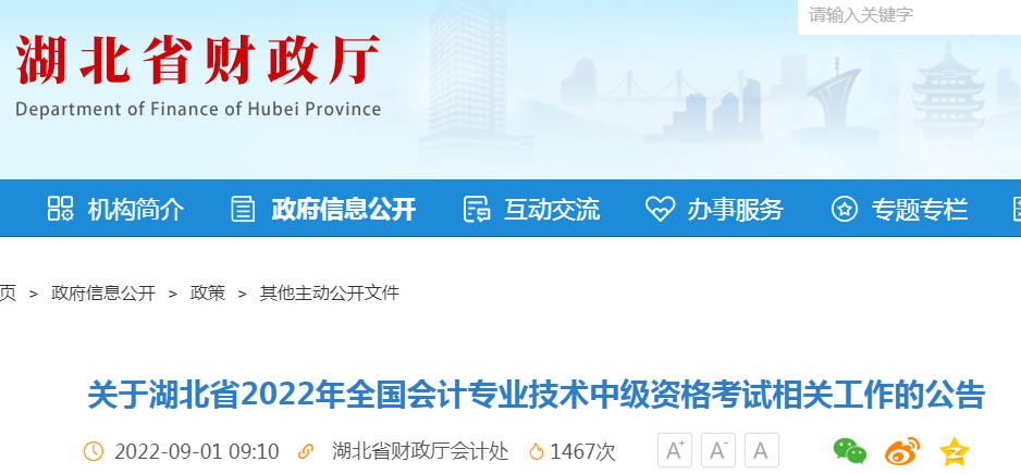 原標(biāo)題:關(guān)于湖北省2022年全國(guó)會(huì)計(jì)專(zhuān)業(yè)技術(shù)中級(jí)資格考試相關(guān)工作的公告
