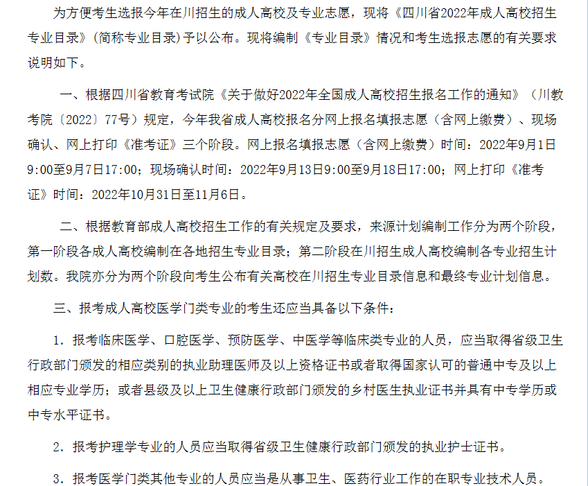成人高考頻道從四川省教育考試院了解到,四川省2022年成人高校招生專業(yè)目錄已公布,詳情如下: