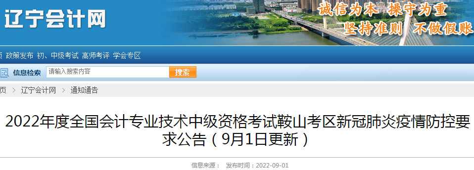 小編根據(jù)遼寧會(huì)計(jì)網(wǎng)發(fā)布“2022年度全國會(huì)計(jì)專業(yè)技術(shù)中級(jí)資格考試(鞍山考區(qū))新冠肺炎疫情防控告知書”得知,根據(jù)當(dāng)前國家、遼寧省和鞍山市新冠肺炎疫情防控工作要求,結(jié)合考試工作實(shí)際,現(xiàn)將疫情防控要求和措施告知如下: