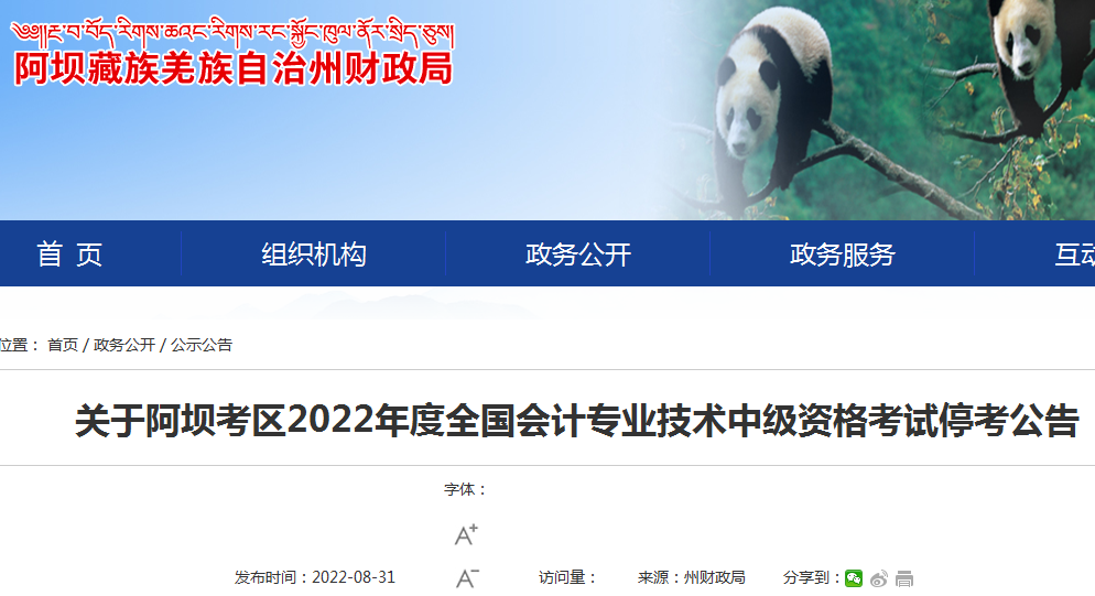 鑒于當(dāng)前我州疫情防控形勢(shì)嚴(yán)峻復(fù)雜,為切實(shí)保障廣大考生的健康安全,根據(jù)我州疫情防控政策要求和目前的實(shí)際情況,對(duì)原定于9月3日至5日舉行的2022年度全國(guó)會(huì)計(jì)專業(yè)技術(shù)中級(jí)資格考試(阿壩考區(qū))予以???,本年度不再安排考試。相關(guān)信息將及時(shí)在四川會(huì)計(jì)服務(wù)網(wǎng)站、阿壩州財(cái)政局網(wǎng)站進(jìn)行公告,請(qǐng)考生及時(shí)關(guān)注。