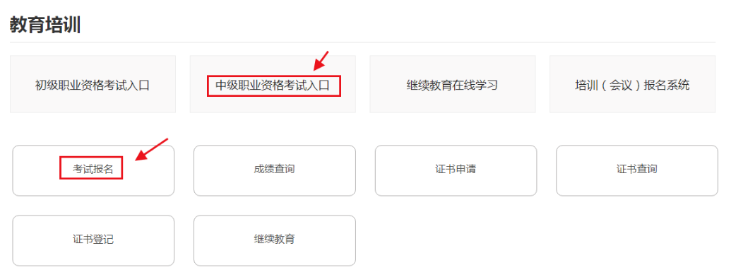 第二步:我們要報(bào)考的是中級(jí)銀行,所以直接點(diǎn)擊“中級(jí)職業(yè)資格考試入口”,進(jìn)入報(bào)名入口,如圖: