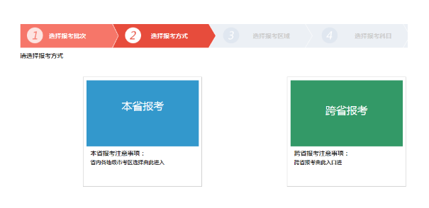 第五步:依次選擇報(bào)考批次、報(bào)考方式、報(bào)考區(qū)域、報(bào)考科目