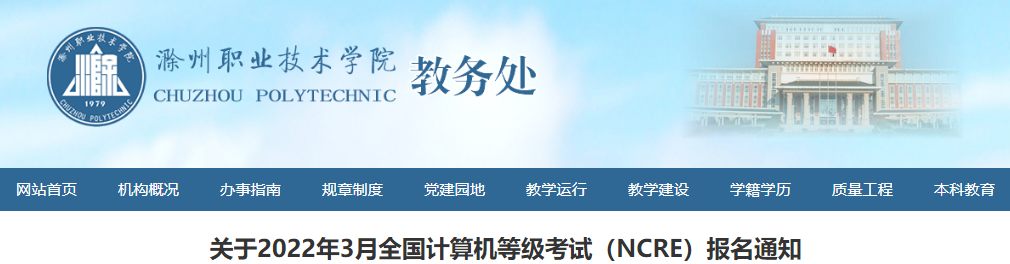 2022年3月全國計算機等級考試報名工作正在進行中,為了方便廣大考生及時獲取報名的實時信息,下面為您精心整理了2022年3月安徽滁州職業(yè)技術學院計算機等級考試報名通知,希望廣大考生及時關注,更多計算機等級考試的相關資訊,請關注的更新。
