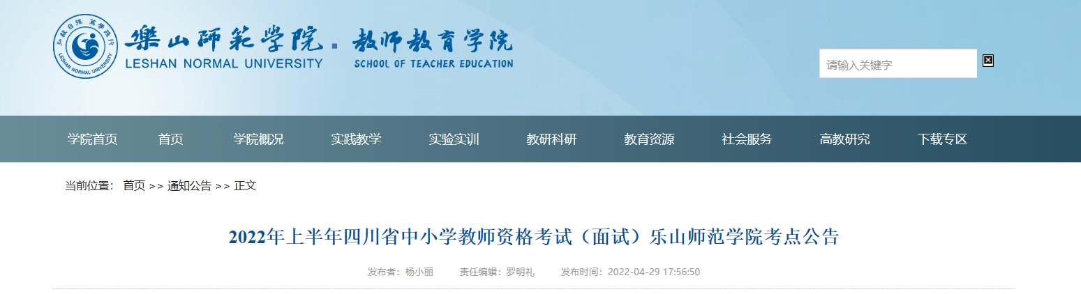 從樂山師范學(xué)院教師教育學(xué)院獲悉,2022年上半年四川樂山師范學(xué)院考點中小學(xué)教師資格考試(面試)公告已公布,請相關(guān)人員仔細閱讀,具體詳情如下: