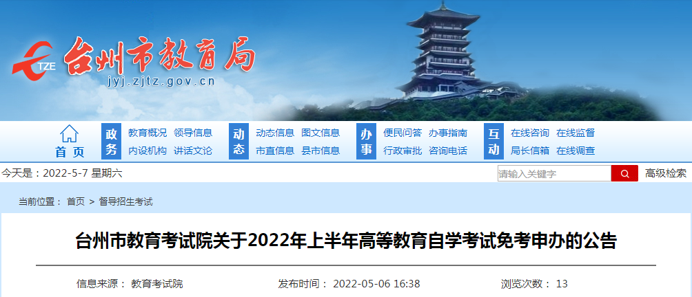 自考頻道從臺(tái)州市教育考試院了解到,2022上半年浙江臺(tái)州自學(xué)考試免考申辦的公告已發(fā)布,詳情如下: