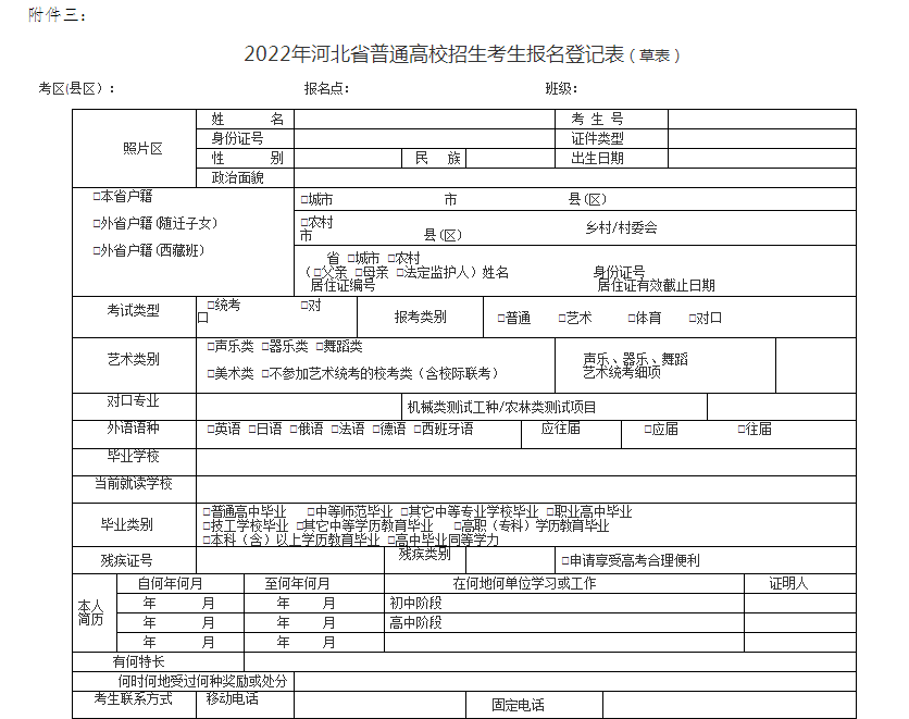 (七)、藝術(shù)、體育、對(duì)口及所有需參加學(xué)校單獨(dú)考試的在后面的專(zhuān)業(yè)測(cè)試中均需要出具《2022年河北省普通高校招生考生基本信息表》,考生可登錄河北省教育考試院網(wǎng)站,自行查詢(xún)、打印。