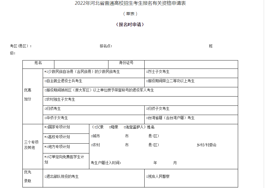 3.申請(qǐng)“*”標(biāo)志項(xiàng)目的考生必須在戶(hù)籍地(縣(市、區(qū)))參加高考報(bào)名;
