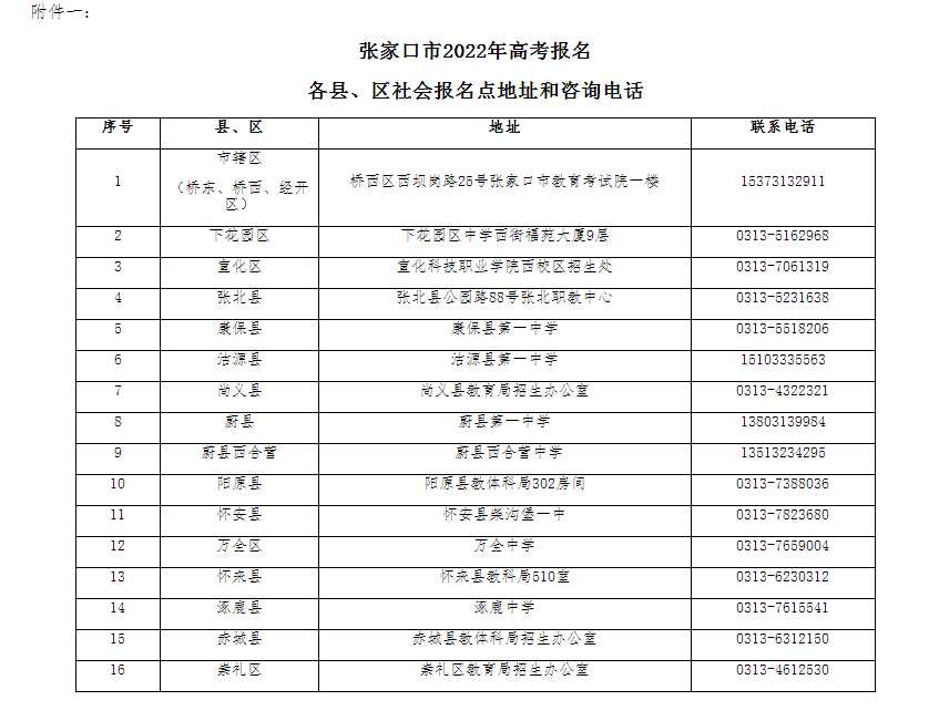 二、張家口市轄區(qū)社會(huì)考生報(bào)名安排: