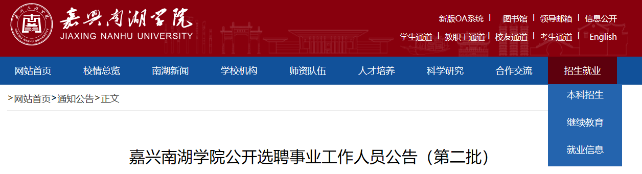 1.嘉興南湖學院公開選聘工作人員計劃及崗位要求
