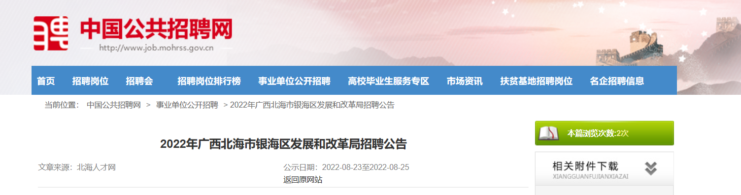 因工作需要,北海市銀海區(qū)發(fā)展和改革局向社會(huì)公開招聘辦公室工作人員2名,現(xiàn)將有關(guān)事項(xiàng)公告如下: