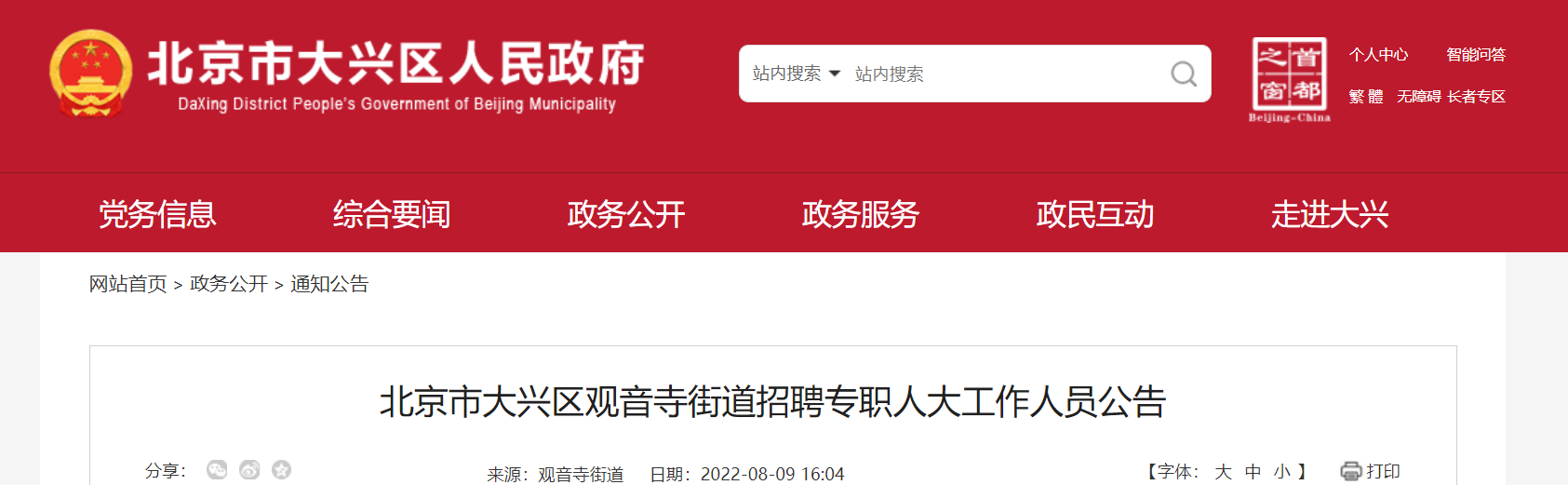 2022北京市大興區(qū)觀音寺街道招聘專職人大工作人員公告已發(fā)布。報名時間:2022年8月10日-8月14日。為您整理了以下內(nèi)容,供您參考。