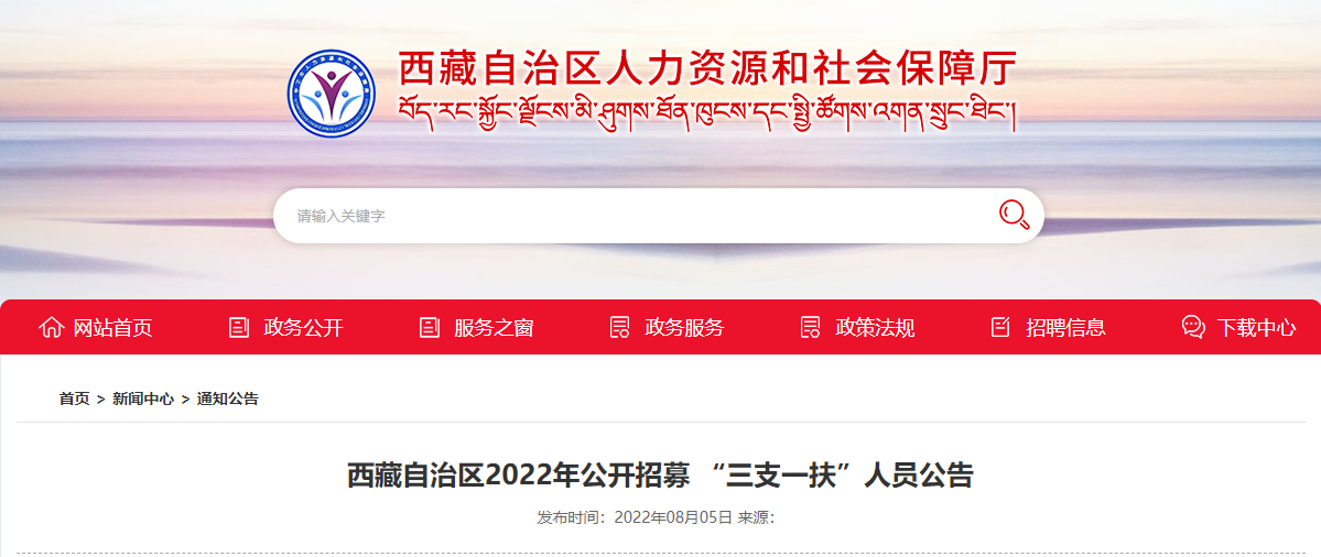 從西藏自治區(qū)人力資源和社會保障廳獲悉,《2022年西藏省高校畢業(yè)生“三支一扶”計劃招募公告》現(xiàn)已公布!從公告中獲悉,2022年西藏三支一扶考試將在2022年9月18日舉行,具體安排如下: