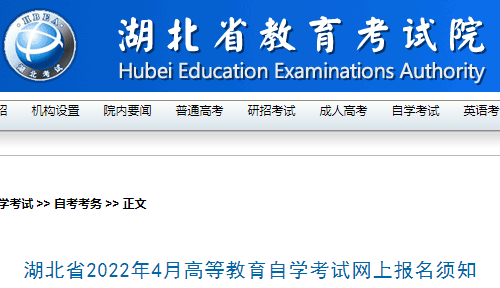 自學(xué)考試頻道根據(jù)湖北省教育考試院公布的《湖北省2022年4月高等教育自學(xué)考試網(wǎng)上報(bào)名須知》了解到,湖北襄陽(yáng)2022年4月自考時(shí)間已公布,安排在4月15至17日期間舉行。具體如下: