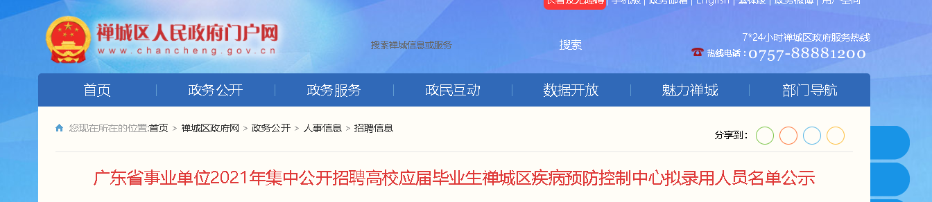 2021廣東佛山市事業(yè)單位招聘高校應(yīng)屆畢業(yè)生禪城區(qū)疾病預(yù)防控制中心擬錄用名單公示已出,公示時間:2022年1月18日至2022年1月26日(共7個工作日),現(xiàn)將招聘公示原文發(fā)布如下: