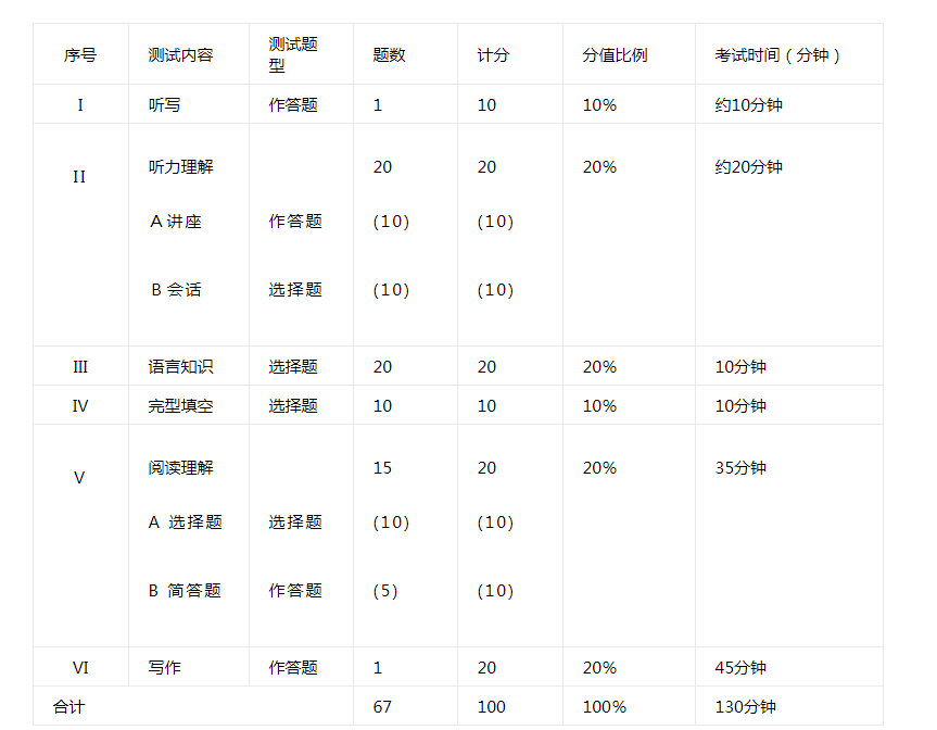 2022年海南英語(yǔ)專(zhuān)業(yè)四級(jí)考試時(shí)間為6月18日,海南TEM4考試內(nèi)容分為六個(gè)部分:聽(tīng)寫(xiě)、聽(tīng)力理解、語(yǔ)言知識(shí)、完型填空、閱讀理解、寫(xiě)作。整個(gè)考試需時(shí)130分鐘。