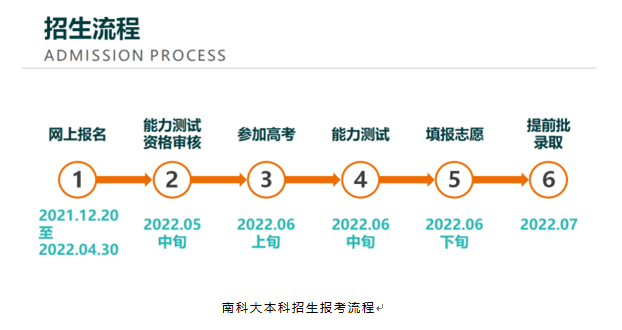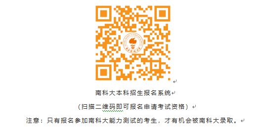 報(bào)考南科大的考生,須取得能力測試成績并在高考提前批次或綜合評(píng)價(jià)試點(diǎn)高校相應(yīng)批次第一志愿填報(bào)南科大。