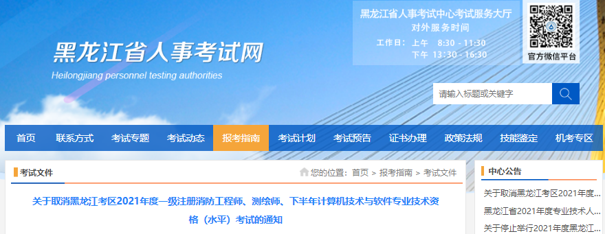 因取消考試給您帶來的不便,敬請諒解。感謝您對我省疫情防控工作的大力支持和配合!如有疑問,請咨詢黑龍江省人事考試中心服務(wù)熱線:0451-82346538(消防、測繪)、82810152(計算機(jī)軟件)。