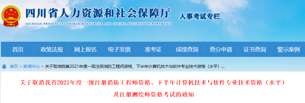 根據(jù)我省疫情防控工作需要,經(jīng)研究決定,取消11月6日、7日在四川省舉行的2021年度一級注冊消防工程師資格、下半年計算機(jī)技術(shù)與軟件專業(yè)技術(shù)資格(水平)及注冊測繪師資格考試?,F(xiàn)將有關(guān)事項通知如下:
