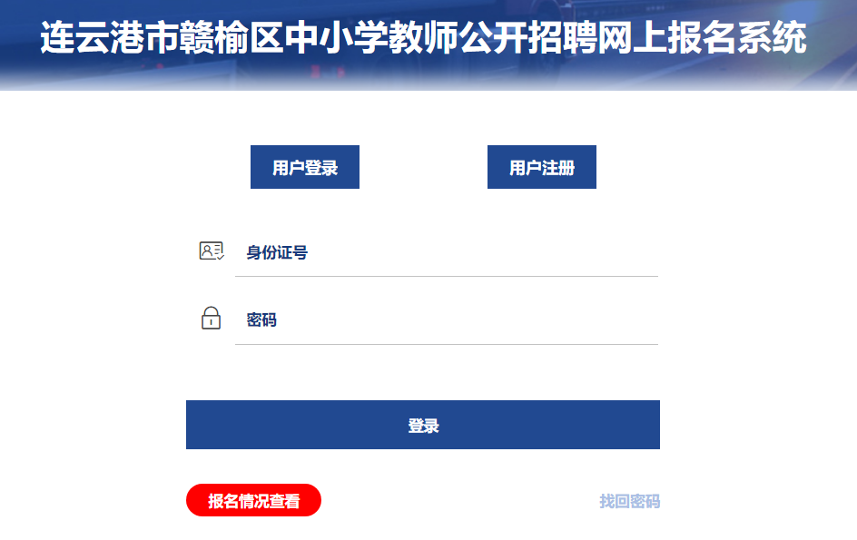 報名采用網(wǎng)絡(luò)方式進(jìn)行。報名、資格初審?fù)ㄟ^網(wǎng)絡(luò)同步進(jìn)行。報名網(wǎng)址:連云港市贛榆區(qū)教育局教師招聘網(wǎng)上報名系統(tǒng)(http://gyjy.wxwx0518.com)。