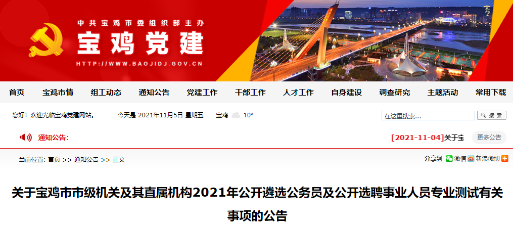 根據(jù)《寶雞市市級機關(guān)及其直屬機構(gòu)2021年公開遴選公務(wù)員及公開選聘事業(yè)人員公告》和考務(wù)安排,本著公開、平等、競爭、擇優(yōu)的原則,現(xiàn)將部分職位專業(yè)測試有關(guān)事項公告如下: