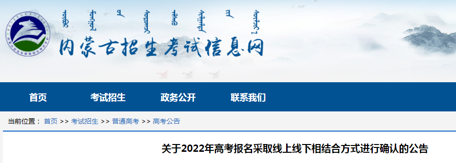 從內(nèi)蒙古自治區(qū)教育招生考試中心了解到,關于2022年內(nèi)蒙古高考報名采取線上線下相結合方式進行確認的公告,具體如下: