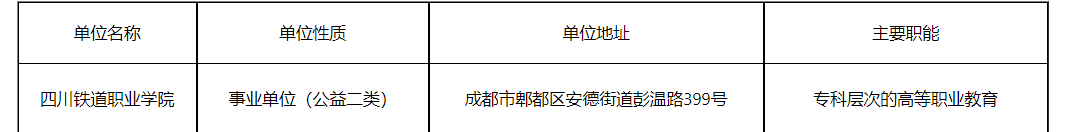 根據(jù)《事業(yè)單位人事管理條例》(國務(wù)院令第652號)、《事業(yè)單位公開招聘人員暫行規(guī)定》(人事部令第6號)、《四川省省屬事業(yè)單位公開招聘工作人員實(shí)施細(xì)則(試行)》(川人發(fā)〔2006〕34號)和《關(guān)于進(jìn)一步規(guī)范省屬事業(yè)單位公開招聘工作人員工作的通知》(川人辦發(fā)〔2009〕457號)等有關(guān)規(guī)定,經(jīng)四川省教育廳備案,我單位面向社會公開考核招聘1名工作人員。現(xiàn)將公開招聘有關(guān)事項公告如下[本公告同時在四川省人事資源和社會保障廳人事考試專欄(網(wǎng)址:http://202.61.89.231/,下同)、四川省教育廳(http://edu.sc.gov.cn,下同)和四川鐵道職業(yè)學(xué)院(https://www.scrc.org.cn/,下同)上發(fā)布]一、招聘單位基本情況