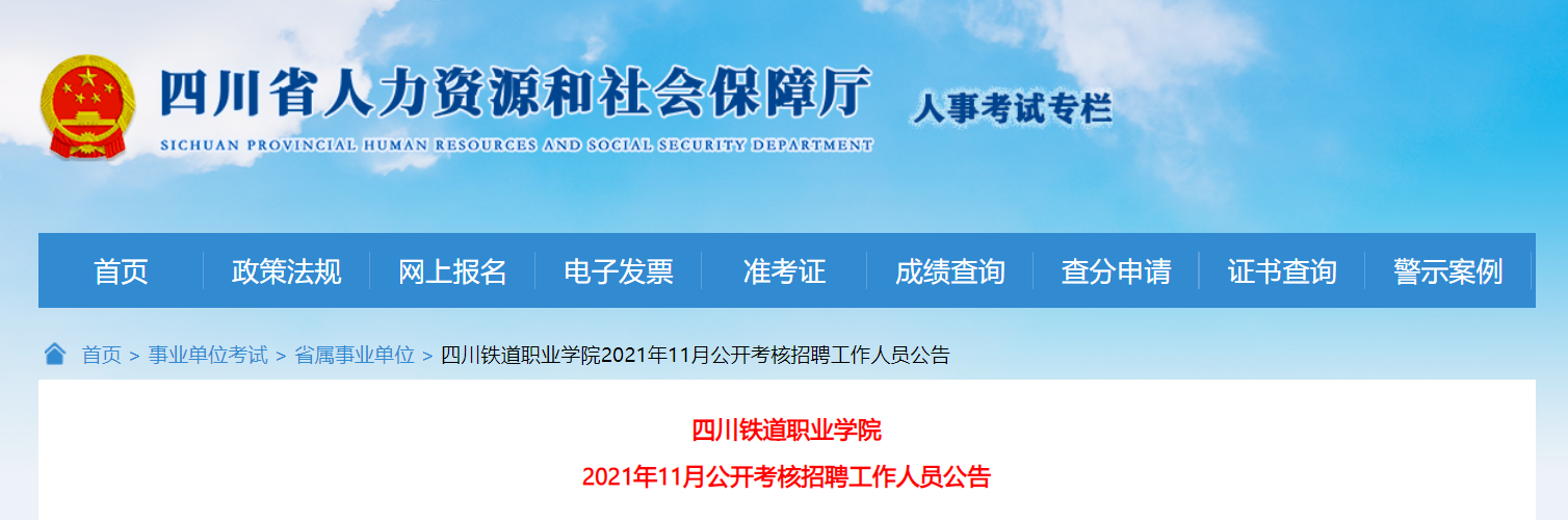 考核、體檢、綜合考核合格者由四川鐵道職業(yè)學(xué)院確定為擬聘用人員,并在省人社廳“人事考試”專欄、省教育廳和四川鐵道職業(yè)學(xué)院網(wǎng)站上公示7個工作日。