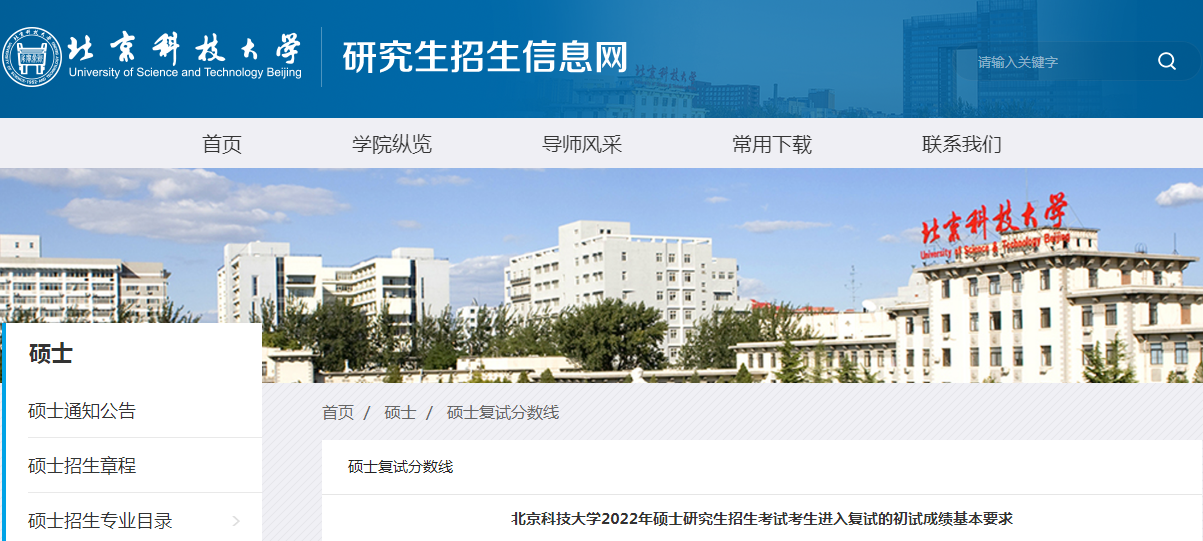 考研頻道從北京科技大學研究生招生信息網(wǎng)了解到,北京科技大學2022年考研復試分數(shù)線(已公布),詳情如下: