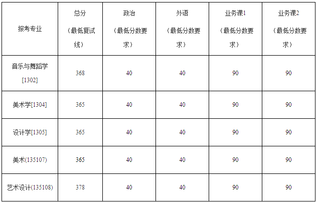 考生的初試成績必須符合“藝術學院碩士研究生入學考試復試各專業(yè)復試分數(shù)線”的基本要求。依據(jù)吉林大學相關文件,藝術學院音樂與舞蹈學[1302]和設計學[1305]按照招生名額的120%進行復試劃線,藝術設計(135108)按照招生名額的130%進行復試劃線,美術學[1304]和美術(135107)上線率不足或等同于100%,上學校分數(shù)線考生全部進入復試,復試分數(shù)線為學校分數(shù)線。按比例計算進入復試人數(shù),小數(shù)點后第一位四舍五入,同分并列考生全部進入復試。