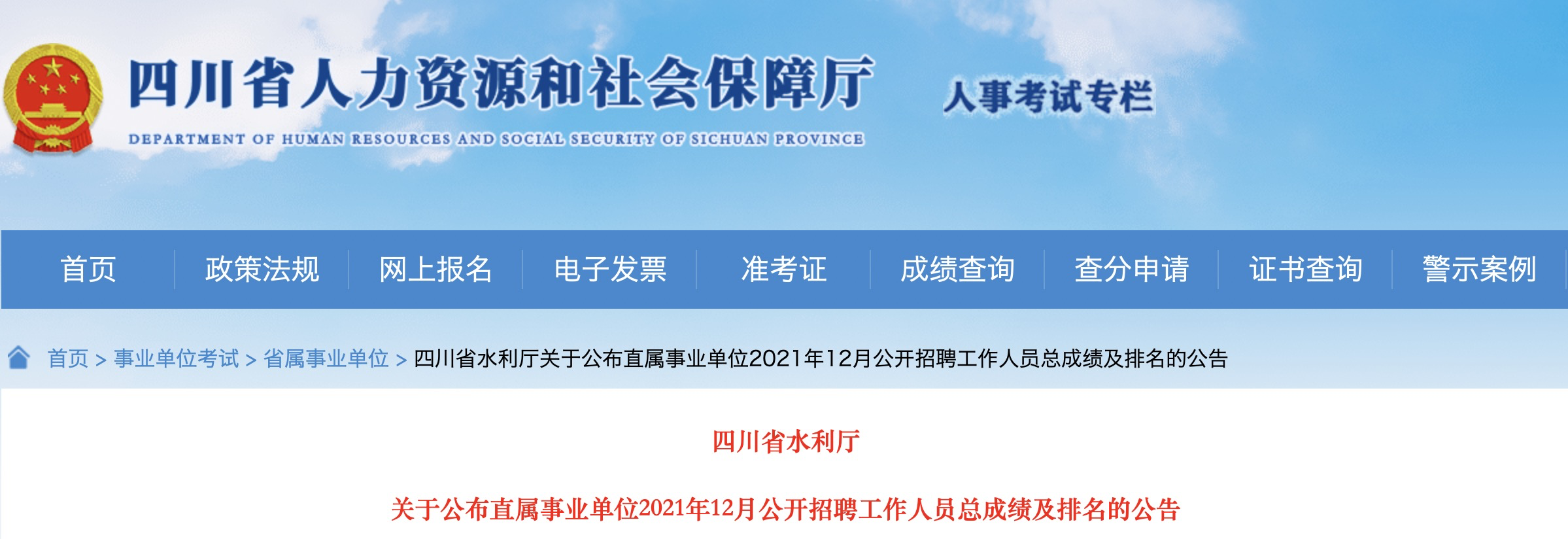 四川省水利廳關(guān)于公布直屬事業(yè)單位2021年12月公開招聘工作人員總成績及排名的公告已發(fā)布,現(xiàn)將公告原文發(fā)布如下,供您參考: